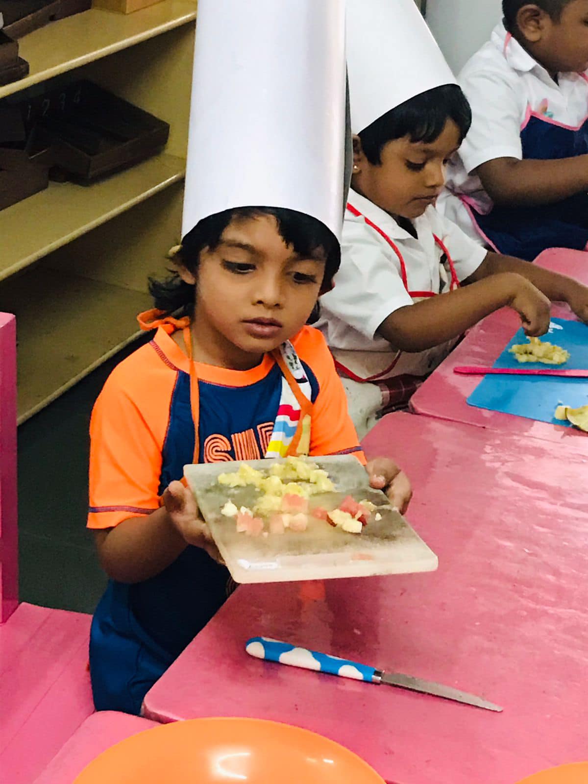 Our little chefs had fun making a healthy fruit salad! It was a colorful, tasty way to learn about fruits and healthy eating